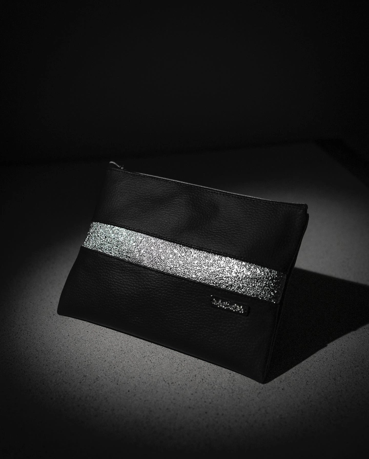 Die Dora Clutch ist ein stilvoller Begleiter für besondere Anlässe – mit einem eleganten Design und liebevollen Details. Die Tasche besteht komplett aus hochwertigem Kunstleder. In der Mitte setzt ein glänzendes, silberfarbenes Kunstleder einen raffinierten Akzent, der die Clutch zu einem echten Hingucker macht.
