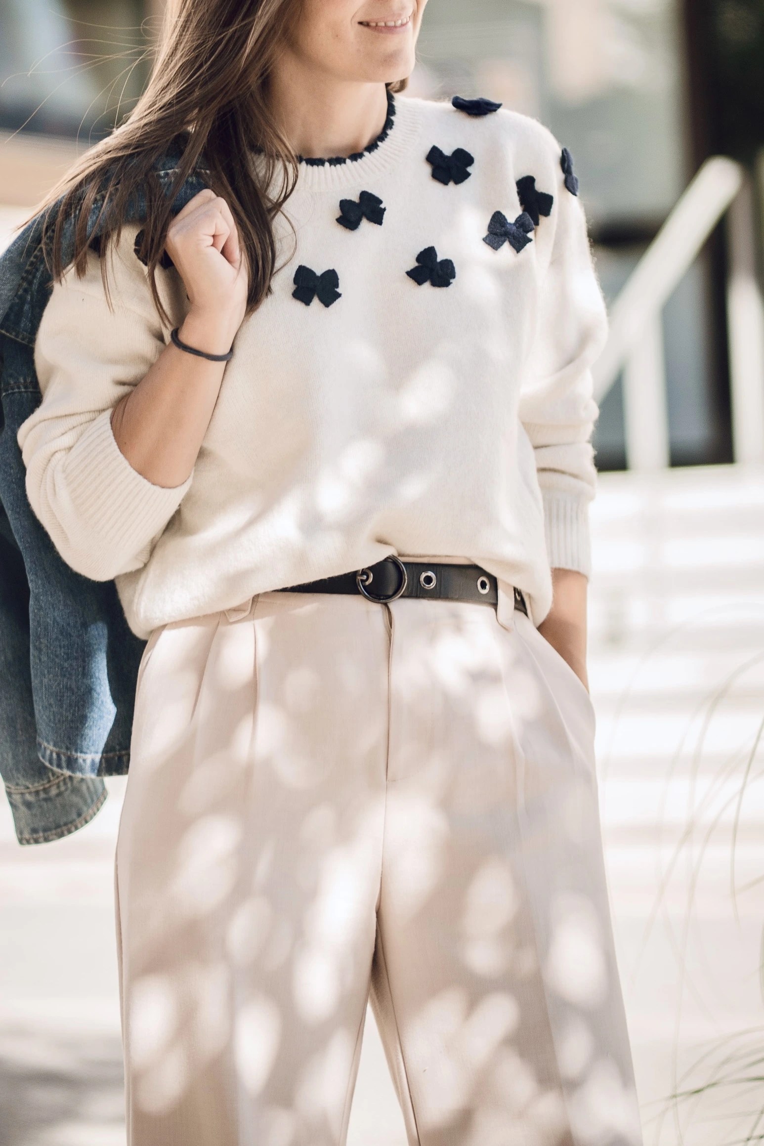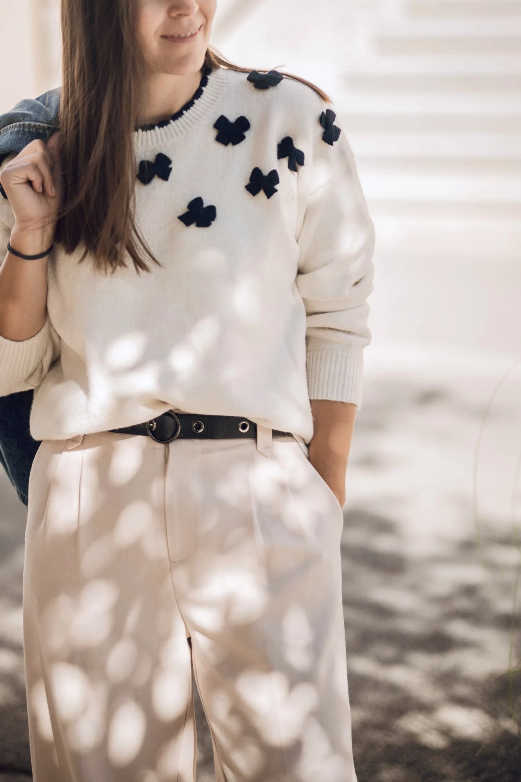 Verleihe deinem Outfit einen Hauch von verspielter Eleganz: Dieser weiche Strickpullover begeistert mit aufwendig gearbeiteten 3D-Schleifen, die dem Look Tiefe und eine feminine Note verleihen. Die charmanten Details machen ihn zum Blickfang – ideal für alle, die das Besondere lieben.