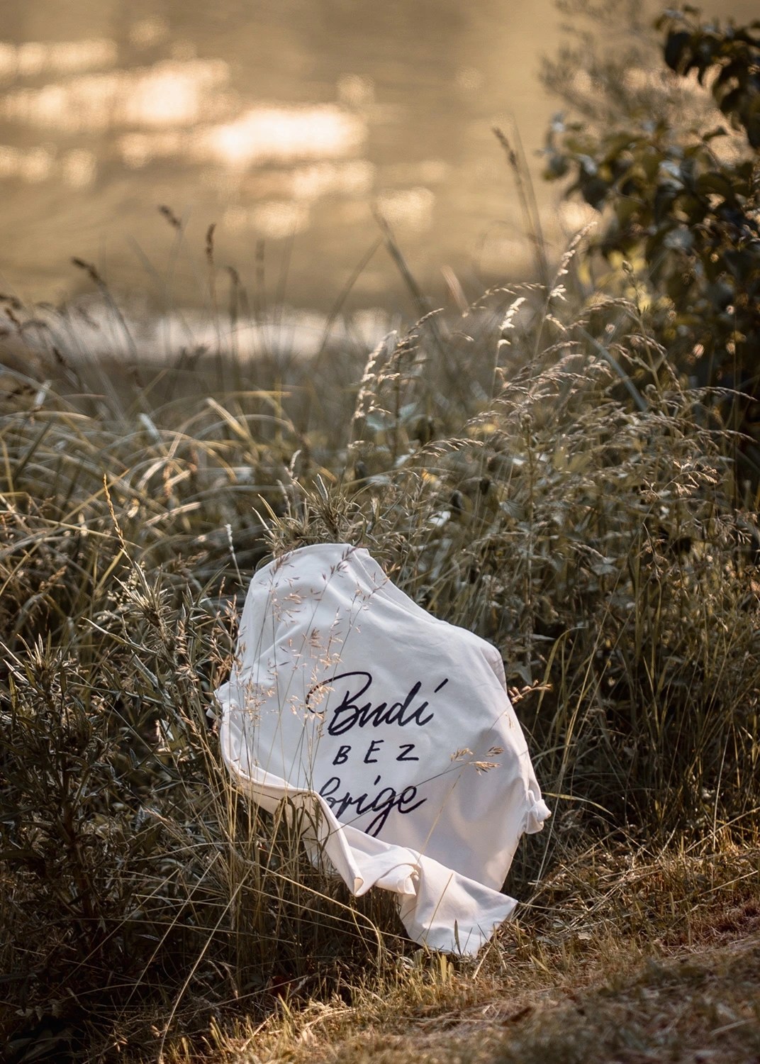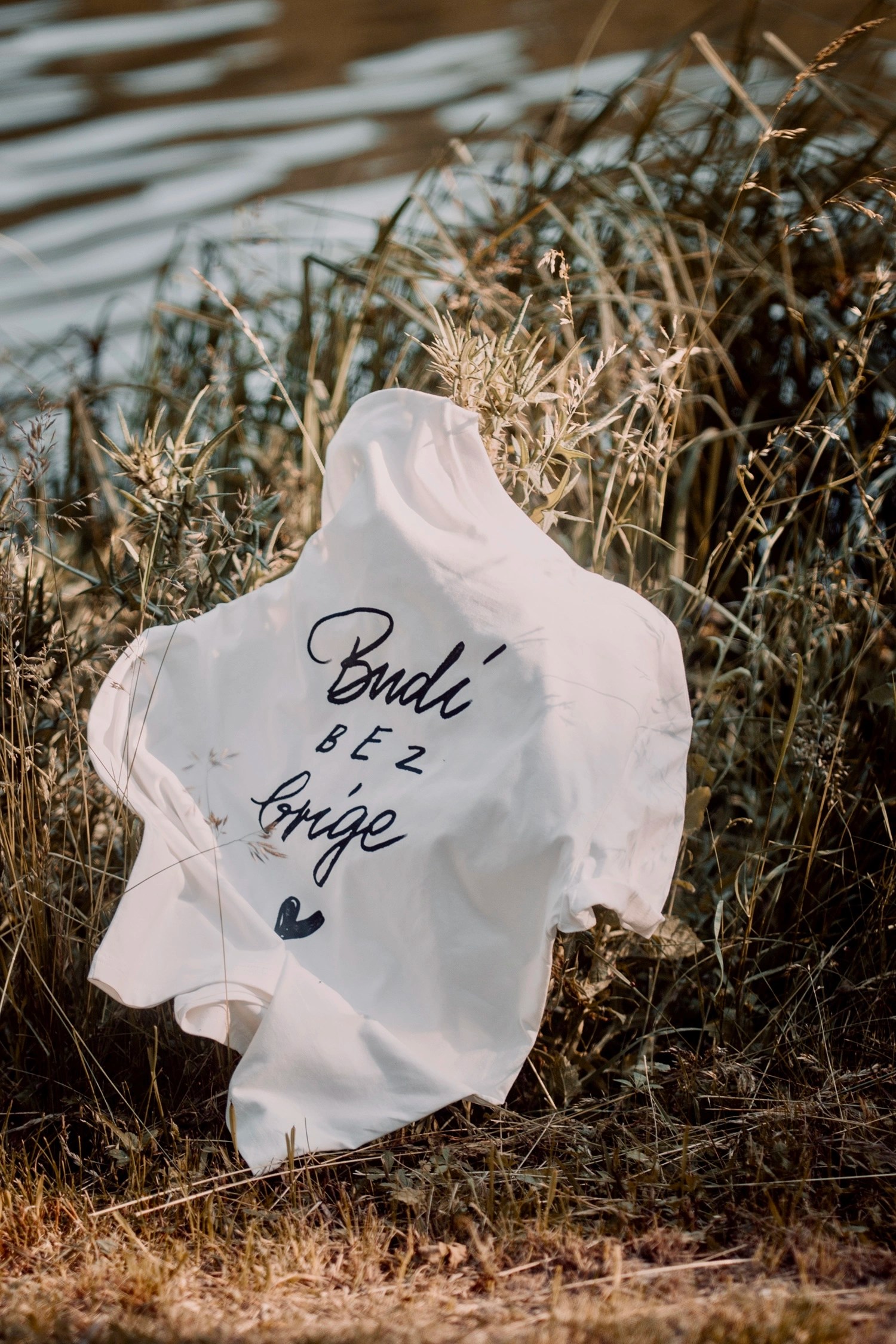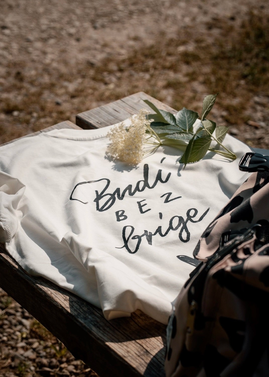 Rückenprint: „Budi bez brige“ in verspielter Typo – stark, emotional, klar